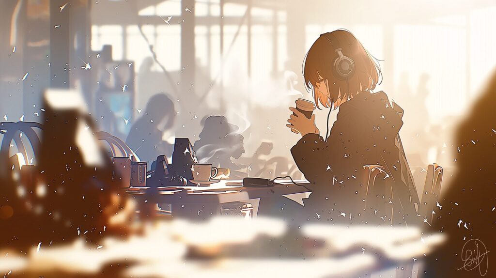 週末にゆったりとコーヒー飲みながら、お気に入りのラジオを聴きながら、ホッとする瞬間 I like to chill at a cafe on weekends イメージビジュアル B ver 制作メモ ...