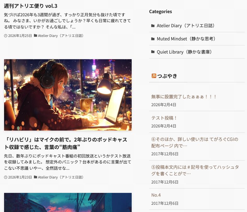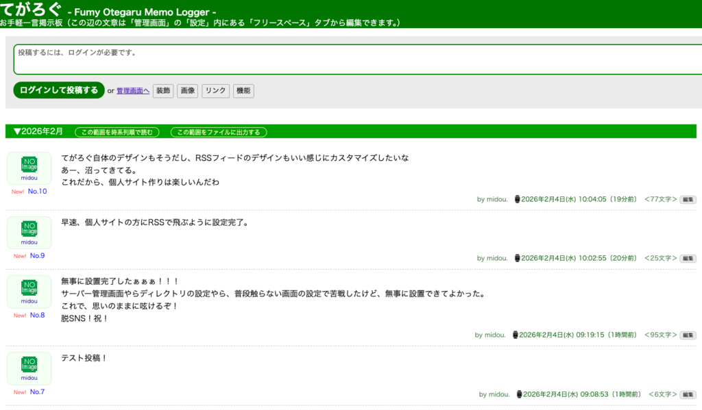 つぶやき(てがろぐ)の開設と設置